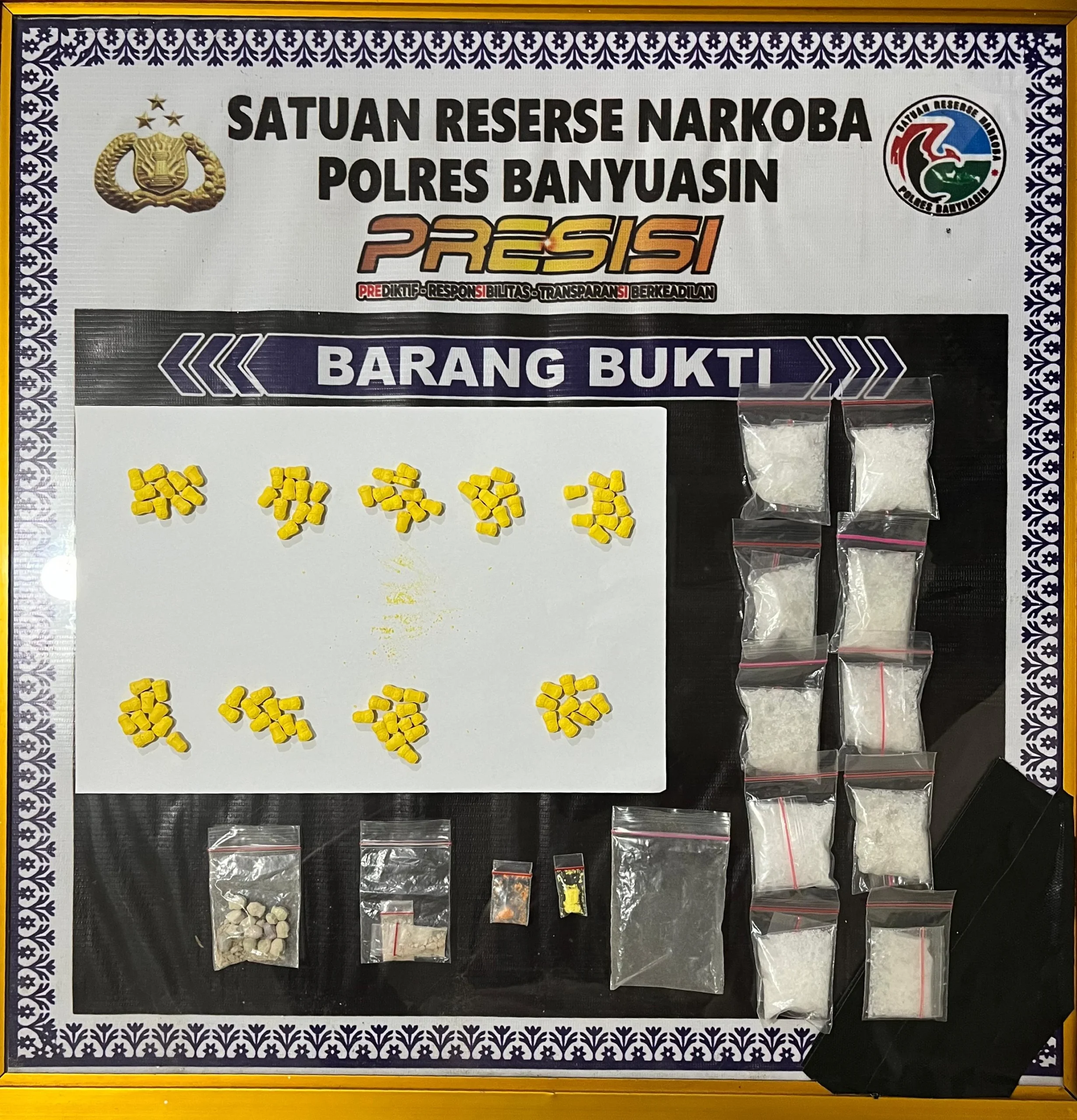 “Pada pukul 06.30 WIB, pelaku berhasil diamankan di kediamannya. Barang bukti narkotika ditemukan tersembunyi di atas plafon rumah, sementara satu unit handphone ditemukan di lantai dapur,” jelas Kapolres Banyuasin melalui keterangan resminya.
