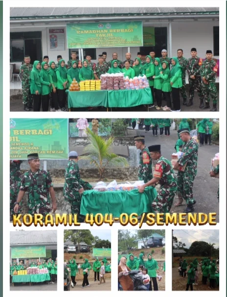 MUARA ENIM, Suryanews86.com – Mengoptimalkan nilai-nilai kasih sayang dan kebaikan di bulan Ramadhan, Koramil 404-06/Semendo (Kodim 0404/Muara Enim) bekerja sama dengan Persit Kartika Candra Kirana (KCK) Cabang XXXIX DIM Muara Enim Koorcab REM 044 PD II Sriwijaya, menggelar kegiatan pembagian takjil bertajuk “Sinar Kasih Bulan Ramadhan” pada hari Kamis (12/03/2026) pukul 16.30 WIB.