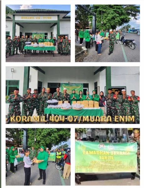 MUARA ENIM, Suryanews86.com – Di tengah kesucian bulan Ramadhan yang penuh berkah, Koramil 404-07/Muara Enim Kodim 0404/Muara Enim dipimpin Danramil Kapten Inf Arif Noer Rochman beserta anggotanya bersama Ibu-ibu Persit mengajak kita semua merasakan kehangatan kasih sayang melalui kegiatan berbagi takjil. Rabu (11/03/2026).
