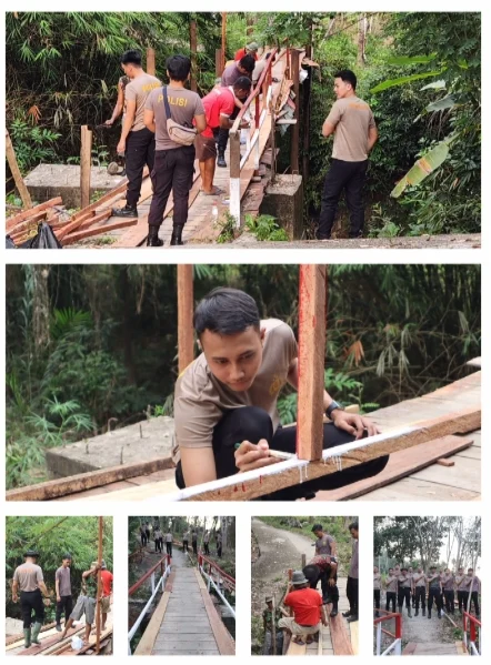 MUARA ENIM , Suryanews86.com – Kepedulian terhadap keselamatan dan kenyamanan masyarakat kembali ditunjukkan oleh Polres Muara Enim melalui kegiatan perbaikan jembatan penghubung di Kampung VI Desa Karang Raja. Jembatan tersebut merupakan akses vital yang menghubungkan Kampung VI dengan Kampung VII Sosial dan setiap hari digunakan warga untuk beraktivitas.