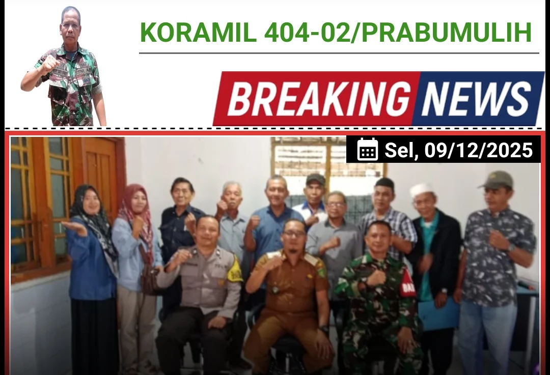 Prabumulih, Suryanews86.com – Serda Meirizal, seorang Bintara Pembina Desa (Babinsa) yang bertugas di Kelurahan Gunung Ibul Selatan di bawah naungan Koramil 404-02/Prabumulih, Kodim 0404/Muara Enim, menunjukkan komitmennya dalam mendukung pembangunan dan keamanan wilayah dengan menghadiri rapat bulanan di kantor lurah Gunung Ibul Selatan, Kecamatan Prabumulih Timur, Kota Prabumulih, pada Selasa, 9 Desember 2025.